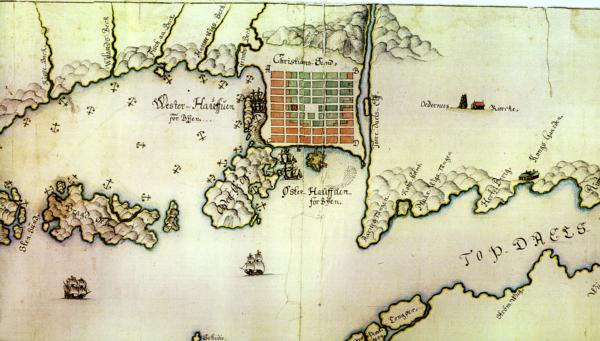 Kart over Kristiansand og "Kugis-holm" - 1666