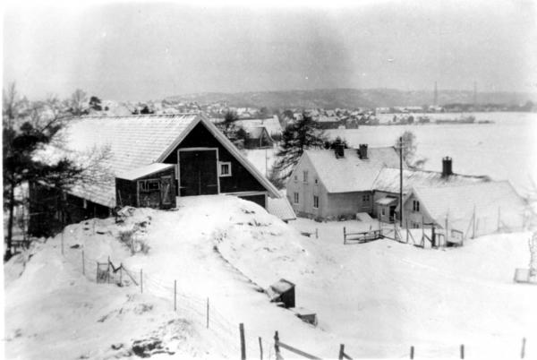 Roligheden Gård før siste verdenskrig. Radiomastene på Valhalla i bakgrunnen.