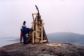 Klargjøring til vedebrenning på Trollkjerringheia ved inngang til nytt årtusen.